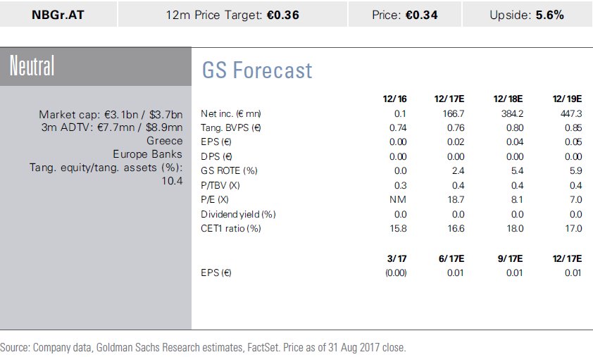 Ειδικότερα, η Goldman Sachs σχετίζει τη σύσταση για τη μετοχή με το πλαίσιο της ελληνικής πολιτικής κατάστασης, την μακροοικονομική ανάκαμψη και τις προοπτικές λειτουργίας της τράπεζας.
