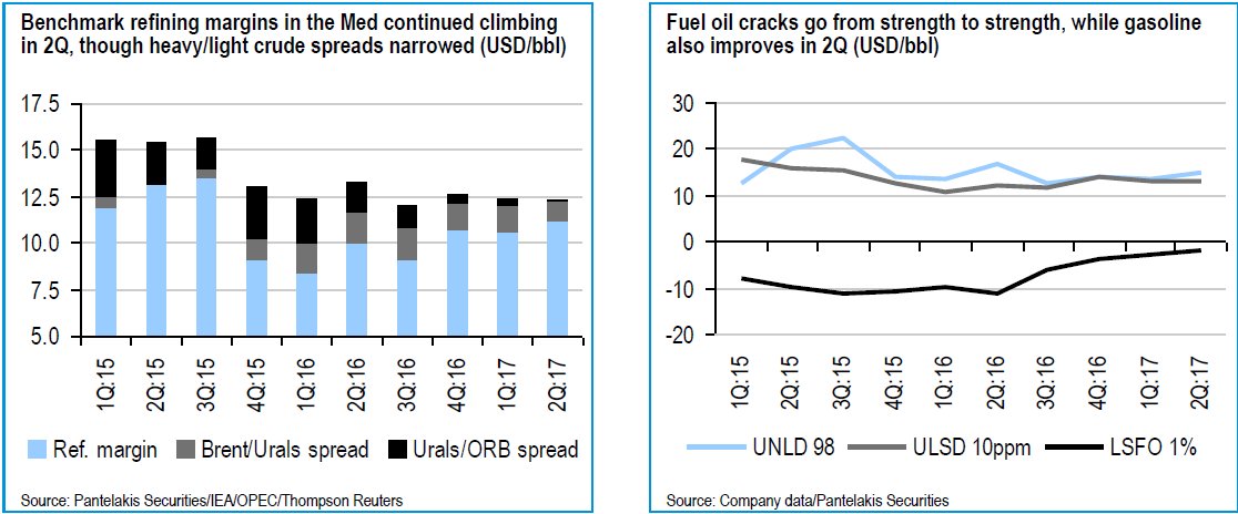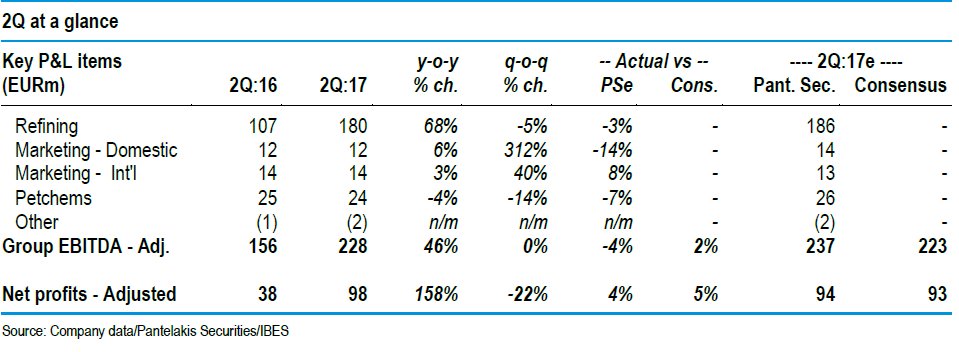Σε ό,τι αφορά τα δημοσιευμένα αποτελέσματα, επηρεάστηκαν αρνητικά από την πτώση των τιμών αργού πετρελαίου και προϊόντων, με αποτέλεσμα τα καθαρά κέρδη στο β' τρίμηνο να ανέλθουν στα 44 εκατ., έναντι 72 εκατ. ευρώ το β' τρίμηνο 2016, με τα καθαρά κέρδη α' εξαμήνου στα 168 εκατ. ευρώ (+62%).