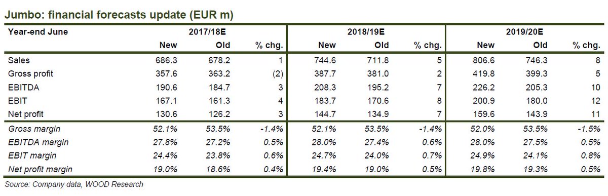 Στα 16,8 ευρώ αυξάνει η Wood την τιμή στόχο της Jumbo, από 12,1 ευρώ προηγουμένως, ενώ αναβαθμίζει σε buy (αγορά) τη σύσταση, από hold (ουδετερότητα) προηγουμένως.