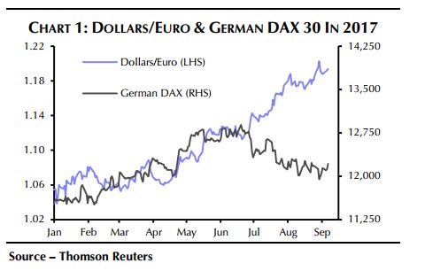 Ωστόσο σύμφωνα με την Capital Economics η ισχύς του ευρώ θα ξεθωριάσει, ειδικά έναντι του δολαρίου, καθώς η ΕΚΤ αναμένεται να ανακοινώσει τον Οκτώβριο τα σχέδιά της για το περιορισμό του προγράμματος ποσοτικής χαλάρωσης.