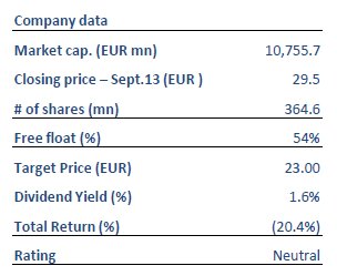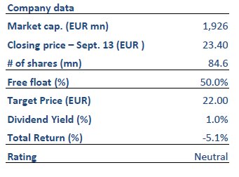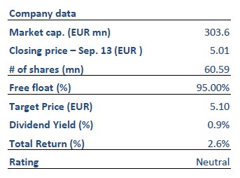 Τέλος, μειώνει και την τιμή στόχο της ΕΧΑΕ στα 5,10 ευρώ από 5,25 ευρώ, διατηρώντας παράλληλα την ουδέτερη σύσταση, λόγω του υποτονικού όγκου συναλλαγών κατά την τρέχουσα χρήση στο ΧΑ.