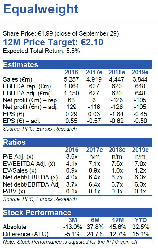 Προβλέπει επίσης ότι η ΔΕΗ θα καταγράψει ζημιές ύψους 116 εκατ. ευρώ φέτος (από 129 εκατ. ευρώ καθαρά κέρδη το 2016) και 126 εκατ. το 2018, εξαιρουμένης της εκτίμησης μας για ένα εφάπαξ φόρο κεφαλαιουχικών κερδών ύψους 300 εκατ. από τη συναλλαγή του ΑΔΜΗΕ.