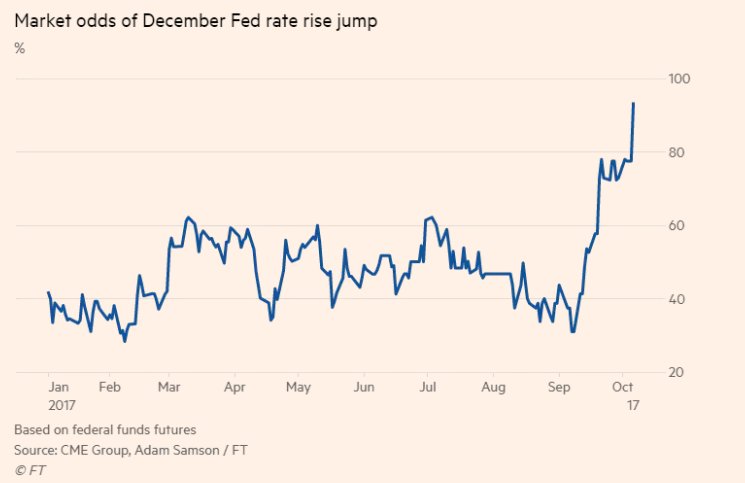 Την ίδια στιγμή, η πιθανότητα για νέα αύξηση των επιτοκίων -η τρίτη μέσα στο έτος- από τη Fed εκτοξεύεται στο 98%, σύμφωνα με τους υπολογισμούς της CME Group που βασίζονται στις τοποθετήσεις των επενδυτών στις αγορές.