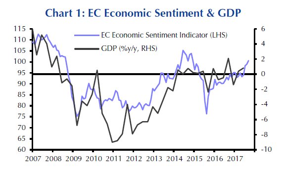 Και ο δείκτης οικονομικού κλίματος του Σεπτεμβρίου δείχνει ότι η ετήσια αύξηση θα διαμορφωθεί από το 0,8% του 2ου τριμήνου σε περίπου 2%.