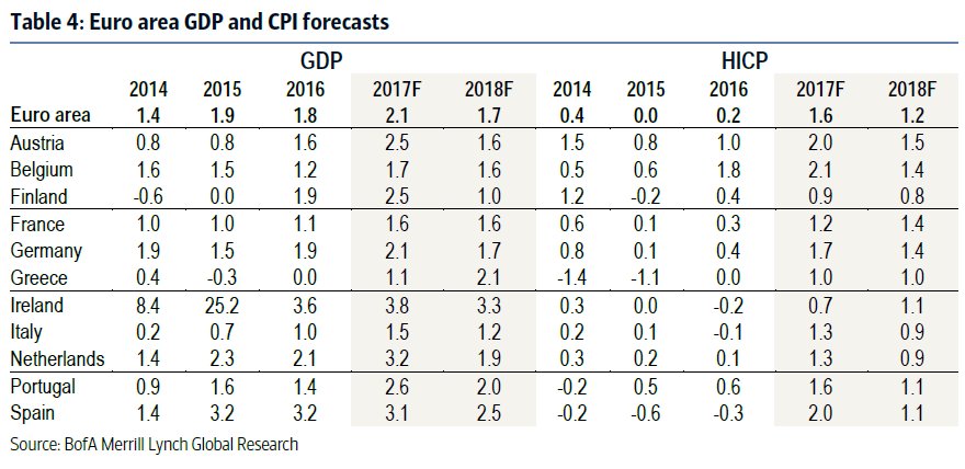 Στην σημερινή 5σέλιδη ανάλυσή της με τίτλο "ECB: Dovish Downsizing" (ΕΚΤ: Υποχώρηση των μετριοπαθών) που σας παρουσιάζει το www.bankingnews.gr, η Bank of America Merrill Lynch εμφανίζεται φειδωλή στις εκτιμήσεις της για την πορεία της ελληνικής οικονομίας, ενώ για τον πληθωρισμό εκτιμά ότι θα παραμείνει στα επίπεδα του 1% και το 2017 και το 2018.