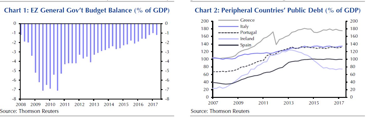 Τα πρόσφατα δημοσιονομικά στοιχεία υποδηλώνουν ότι οι περισσότερες περιφερειακές χώρες της ευρωζώνης εξακολουθούν να βελτιώνουν τη δημοσιονομική τους θέση.