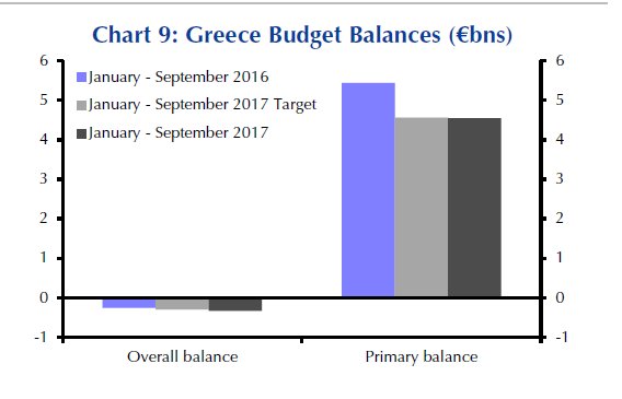Η Ελλάδα πετυχαίνει για το 2017 τους στόχους για τα πρωτογενή πλεονάσματα, αλλά η επίδοση είναι χειρότερη από εκείνη που είχε καταγραφεί το 2016.