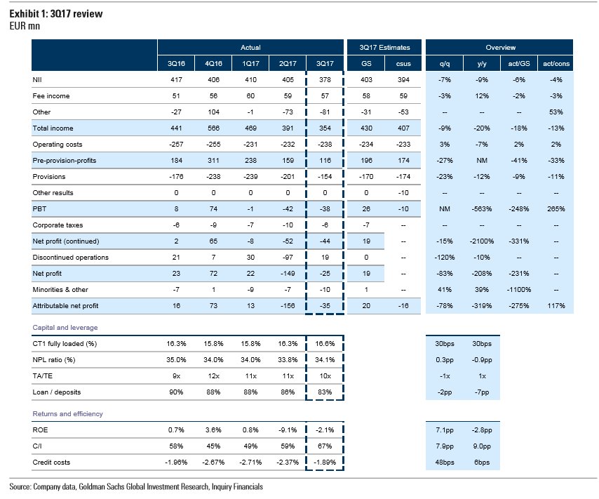 Αξίζει να σημειωθεί εδώ ότι οι λειτουργικές δαπάνες μειώθηκαν κατά 9% σε ετήσια βάση στο Εννιάμηνο του 2017 σε 640 εκατ., αντικατοπτρίζοντας την περιστολή των δαπανών προσωπικού κατά 12% σε ετήσια βάση, ως αποτέλεσμα του Προγράμματος Εθελουσίας Εξόδου Προσωπικού, το οποίο ολοκληρώθηκε το 2016.