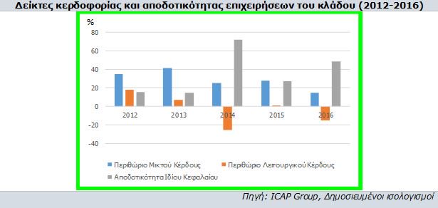Ο κλάδος της ζημιών παρουσιάζει το χαμηλότερο περιθώριο λειτουργικού κέρδους το οποίο και κυμάνθηκε σε αρνητικά επίπεδα (-10,8% ως μέσος όρος 5ετίας), ενώ ο αντίστοιχος δείκτης για το σύνολο του κλάδου διαμορφώθηκε επίσης σε αρνητικά επίπεδα (-2,8%). Τον υψηλότερο μέσο δείκτη αποδοτικότητας ιδίου κεφαλαίου της 5ετίας εμφανίζει ο κλάδος των ζημιών (92,6%), ενώ ο αντίστοιχος δείκτης για το σύνολο του κλάδου είναι 35,4%.