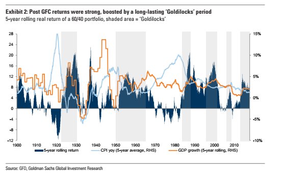 Ειδικότερα, η αμερικανική επενδυτική τράπεζα αναφέρεται σε ένα χαρτοφυλάκιο 60/40, δηλαδή με 60% των κεφαλαίων τοποθετημένο σε μετοχές και 40% τοποθετημένο σε ομόλογα.