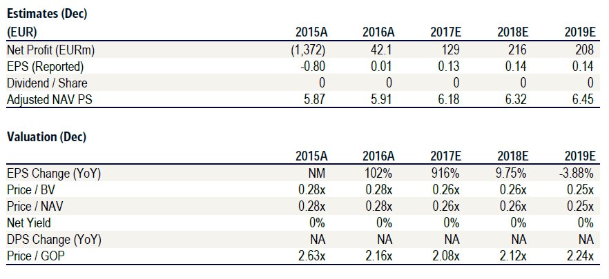 Η BofA διατηρεί την τιμή στόχο στα 1,30 ευρώ, πολύ χαμηλότερα από τα 2,60 ευρώ που δίνει η Goldman Sachs και τα 2,86 ευρώ που δίνει η Euroxx