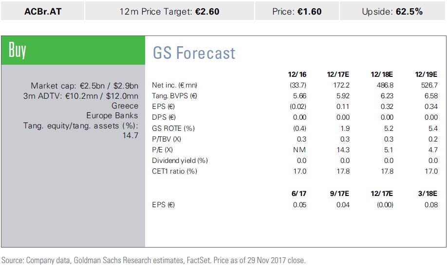 Όπως τονίζει η Goldman Sachs τα προ προβλέψεων έσοδα επιβεβαιώνουν το στόχο του 2017, αλλά η τάση τους δείχνει ότι το 2018 θα βρεθούν υπό πίεση.