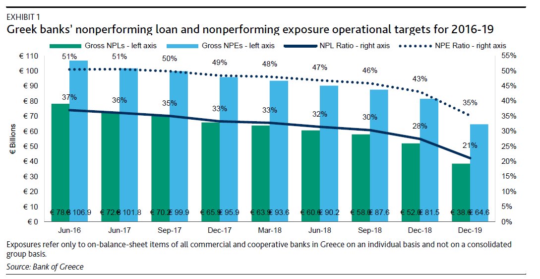Η Τράπεζα της Ελλάδος, σε συνεργασία με την τραπεζική εποπτεία της Ευρωπαϊκής Κεντρικής Τράπεζας, ζήτησε από τις τράπεζες να θέσουν στόχους τόσο για τα NPLs όσο και για τα NPEs.