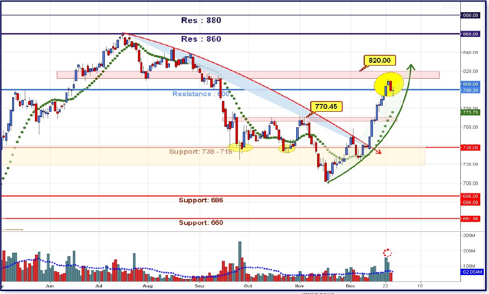 Πιθανή ανοδική τμήση των 820 μονάδων στις πρώτες συνεδριάσεις του 2018 θα δημιουργήσει διάθεση για επέκταση της κίνησης προς το πρώτο σύνορο των 840 με 850 μονάδων, επισημαίνει ο Απόστολος Μάνθος, υπεύθυνος τεχνικής ανάλυσης της Δυναμική ΑΕΠΕΥ.