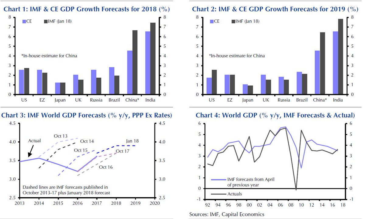 Υπερβολικά αισιόδοξες κρίνει η Capital Economics τις εκτιμήσεις του ΔΝΤ για την παγκόσμια και την αμερικανική οικονομία το επόμενο έτος, θεωρώντας ότι μόλις εν μέρει καλύπτει τις τελευταίες εξελίξεις.