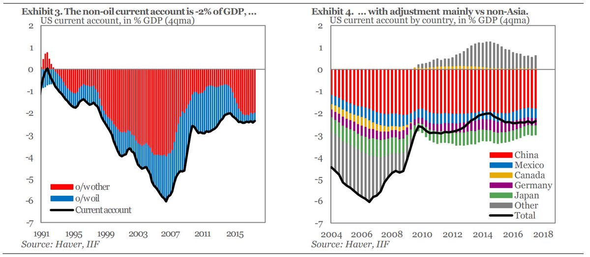Όπως αναφέρει το IIF, σημαντικό ρόλο έχει παίξει το έλλειμμα του ισοζυγίου τρεχουσών συναλλαγών για τις Η.Π.Α..
