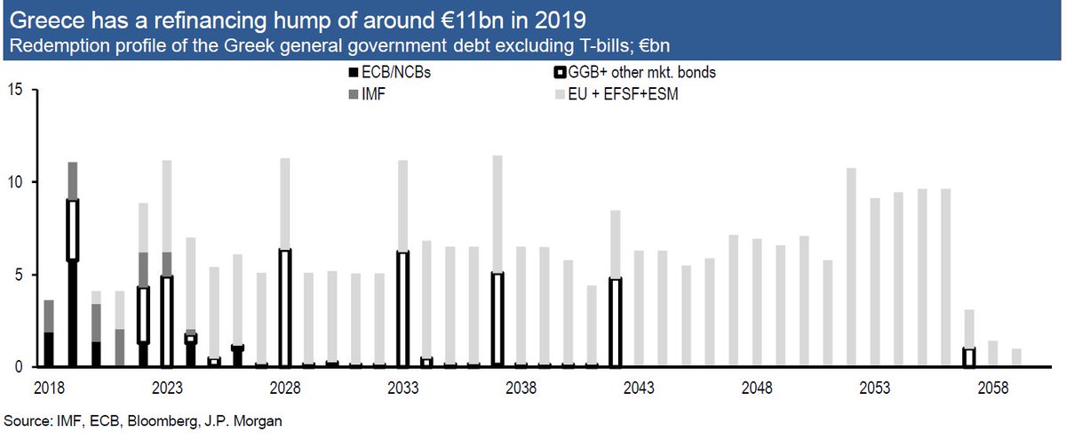 Ενώ υπάρχουν μερικές πηγές κινδύνου (βλ προηγούμενη αξιολόγηση), η JP Morgan πιστεύει ότι ο κίνδυνος ενός τέταρτου προγράμματος διάσωσης έχει πλέον υποχωρήσει σε πολύ χαμηλά επίπεδα (<5%).
