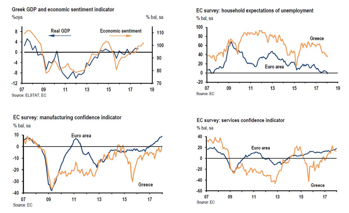 Η ελληνική οικονομία έχει επεκταθεί για τρία τρίμηνα με μέτριο ρυθμό λίγο πάνω από το 1%, αλλά υπάρχουν ενδείξεις ότι η ανάπτυξη μπορεί να ενισχυθεί το 2018, καθώς η Ελλάδα επωφελείται από την ευρύτερη ενίσχυση της παραγωγής της Ευρωζώνης.