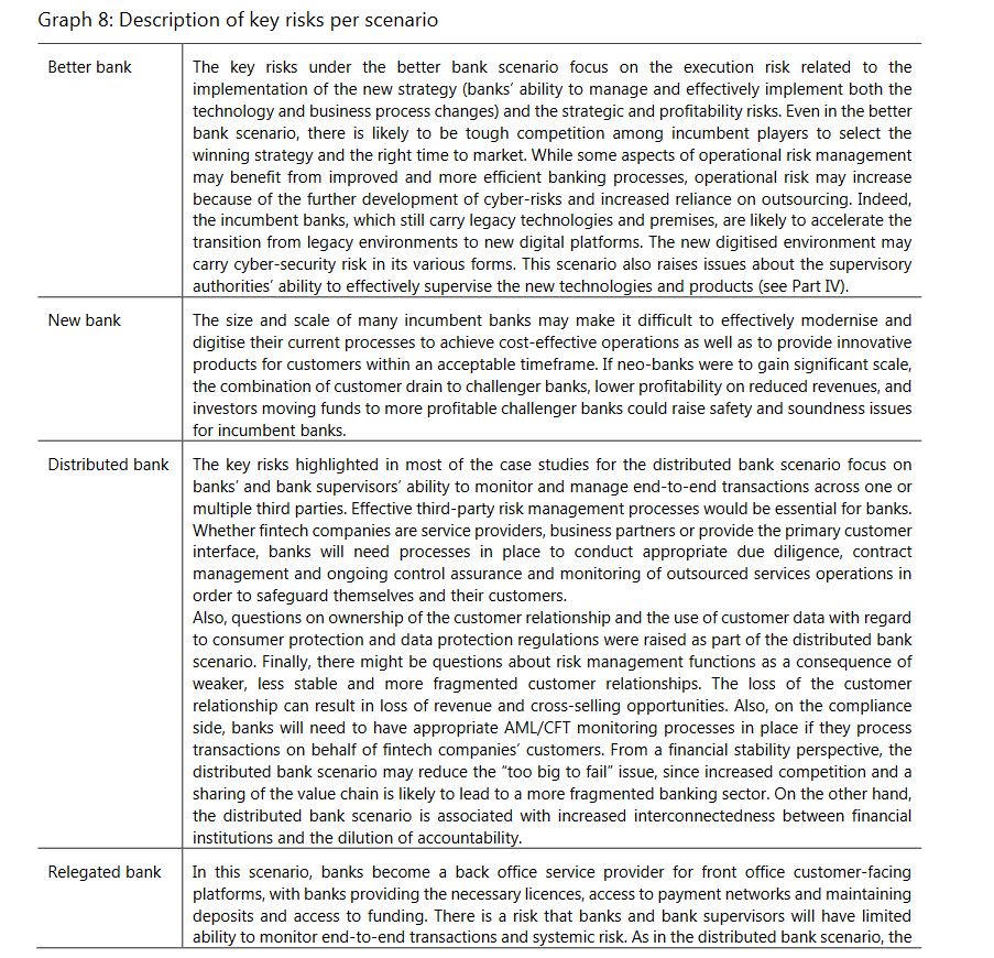 Αυτοί οι κίνδυνοι αφορούν τόσο τις υπάρχουσες τράπεζες όσο και τους νέους ομίλου που λειτουργούν μόνο μέσα των τεχνολογιών.