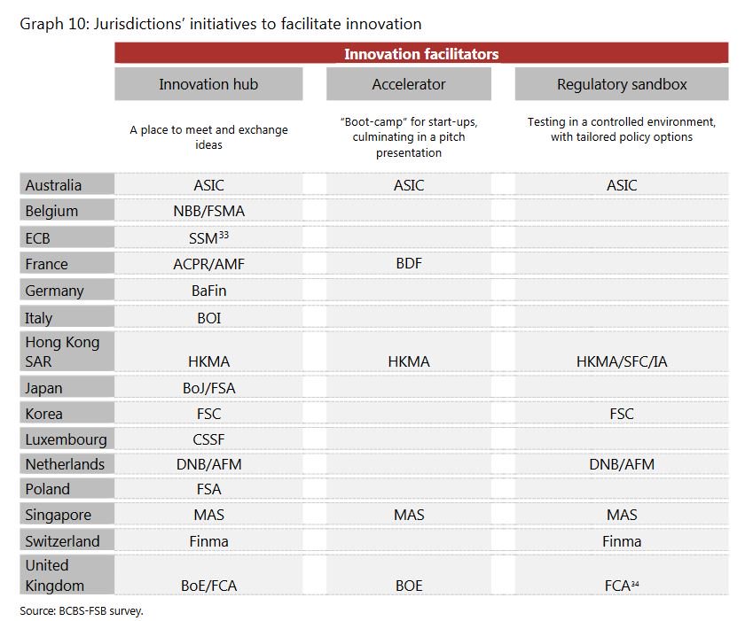10. Οι εποπτικές αρχές σε ορισμένες δικαιοδοσίες έχουν θεσπίσει πρωτοβουλίες για τη βελτίωση της αλληλεπίδρασης με καινοτόμους χρηματοπιστωτικούς φορείς που θα μπορούσαν να διευκολύνουν καινοτόμες τεχνολογίες και επιχειρηματικά μοντέλα για χρηματοπιστωτικές υπηρεσίες, όπως για παράδειγμα κέντρα καινοτομίας, επιταχυντές και κανονιστικά sandboxes.