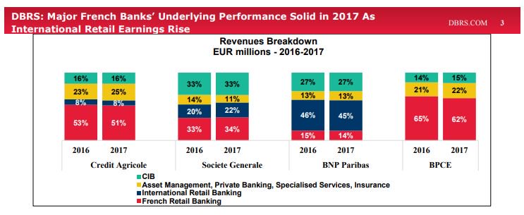 Για τις δραστηριότητες στη Γαλλία, τα έσοδα συρρικνώθηκαν κατά 1,5% το 2017, εξαιτίας του περιβάλλοντος χαμηλών επιτοκίων.