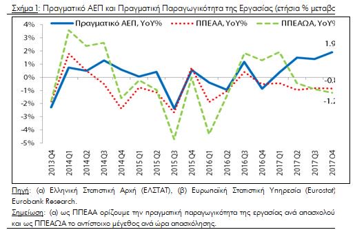 Eurobank: Σε αρνητικό έδαφος η μεταβολή της παραγωγικότητας της εργασίας το 2017