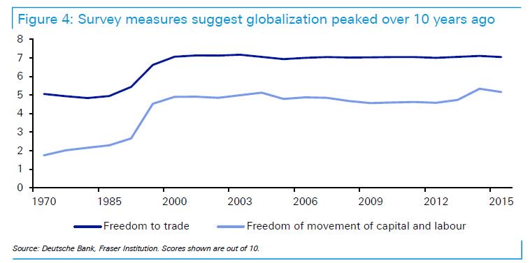 Ωστόσο, κλείνοντας, με πιο απαισιόδοξο τόνο, εκτιμά ότι η παγκοσμιοποίηση έχει ήδη φθάσει στο ζενίθ, όπως απορρέει και από το Brexit, την εκλογική νίκη του Donald Trump και την αυξανόμενη υποστήριξη του λαϊκισμού σε όλο τον κόσμο τα τελευταία χρόνια.