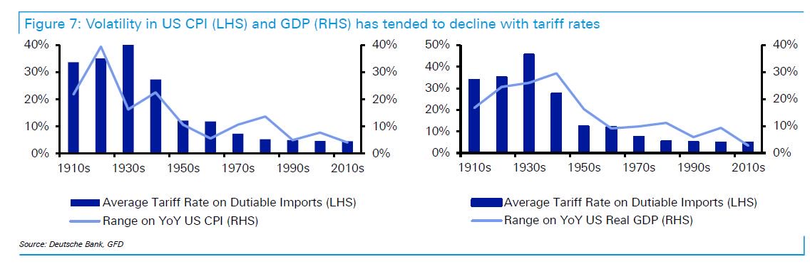 Ειδικότερα, η γερμανική τράπεζα εξέτασε παρόμοιες περιόδους εμπορικού προστατευτισμού κατά τις τελευταίες δεκαετίες, όπως και τις παρόμοιες κινήσεις στις οποίες προχώρησε ο πρώην Πρόεδρος των Ηνωμένων Πολιτειών, George Bush (2001-2008).