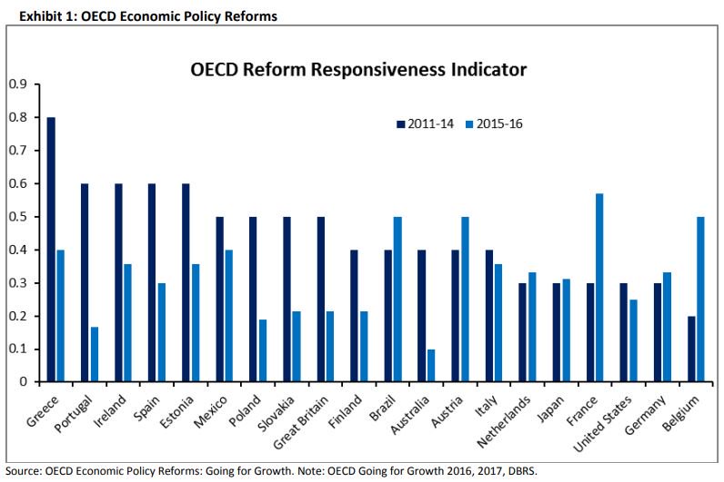 Σύμφωνα με την έκθεση του ΟΟΣΑ «Going for Growth», η Ελλάδα κατατάσσεται στην πρώτη θέση σε συνολική ανταπόκριση στις συστάσεις του ΟΟΣΑ, από το 2011 έως το 2014», αναφέρει ο οίκος.