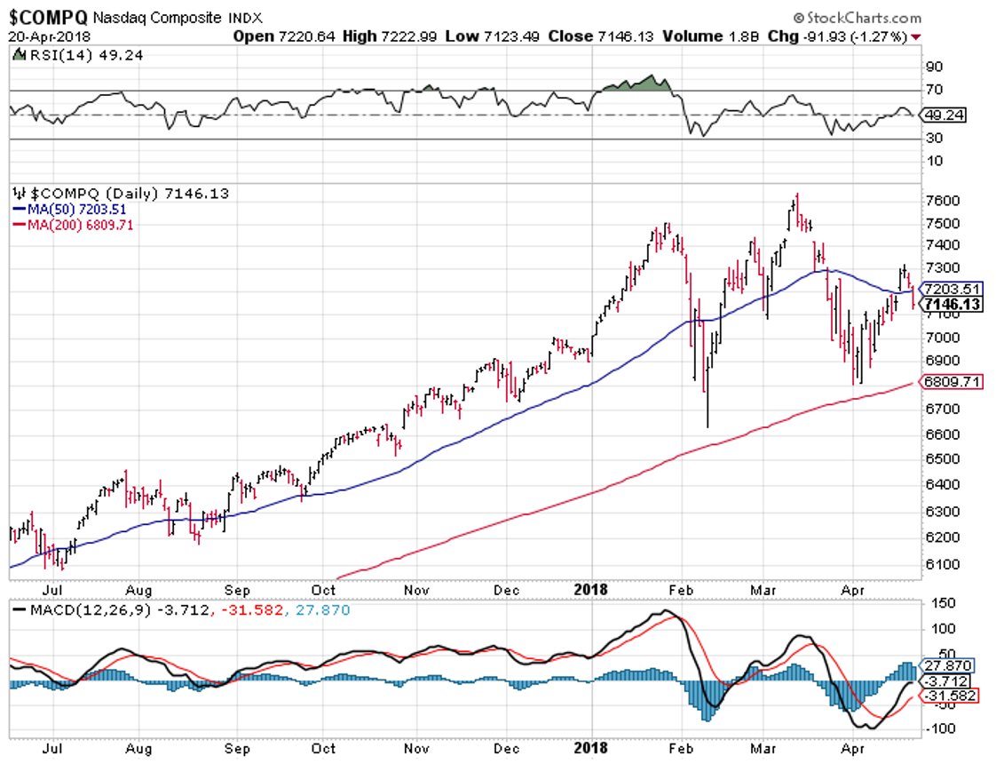 Ο δείκτης Nasdaq (εταιρείες τεχνολογίας) δείχνει σημάδια έντονης κόπωσης /προβληματισμού όπως φαίνεται στο ακόλουθο Διάγραμμα-1. Οσοι ακολουθούν την τεχνική ανάλυση, εντοπίζουν σχηματισμό shoulder-head-shoulder σε εξέλιξη, προσδιορίζοντας την γραμμή στήριξης στις 6,800 μονάδες (περίπου) από όπου διέρχεται και ο ΚΜΟ των 200 ημερών και βρίσκεται περίπου 5% χαμηλότερα από το τελευταίο κλείσιμο (20/4).
