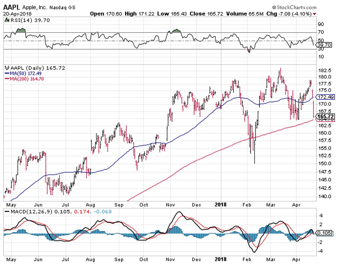 Η μετοχή της Apple (-4% κατα την τελευταία συνεδρίαση), με την ιδαίτερη βαρύτητα που έχει αποκτήσει τα τελευταία χρόνια, συντελεί με αρνητικό τρόπο στην εξέλιξη του δείκτη Nasdaq.