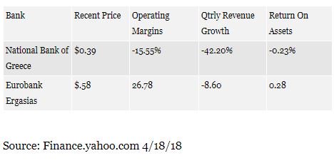 Κι επειδή οι ελληνικές τράπεζες διαπραγματεύονται πολύ πιο κάτω από τις λογιστικές αξίες τους, αυτή μπορεί να είναι η εποχή που αξίζουν προσοχής», δηλώνει στο Forbes, ο Γιώργος Ανδρεάδης, καθηγητής Οικονομικών στο LIU POST, ο οποίος προτιμά την Εθνική Τράπεζα και την Eurobank.