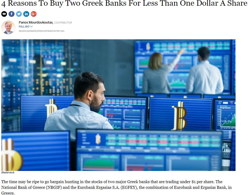 Tο Forbes εστιάζει στις μετοχές της Εθνικής Τράπεζας και της Eurobank
