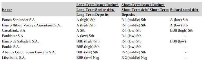 Σε ό,τι αφορά τις επιπτώσεις του νέου λογιστικού προτύπου IFRS 9, η DBRS εκτιμά ότι είναι διαχειρίσιμες, καθώς μείωσε κατά μέσο όρο 21 μονάδες βάσης τον CET1, με μεγάλη χαμένη τη Sabadell (78 μονάδες βάσης).