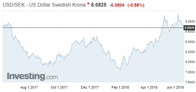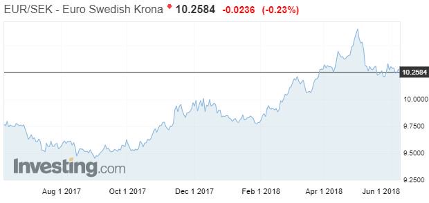 Σε ό,τι αφορά στη σουηδική κορώνα, πλέον, μετά και το χαμηλό εννέα ετών (10,65) τον περασμένο μήνα, διαπραγματεύεται στο εύρος 10,2-10,3 ανά ευρώ, έχοντας απωλέσει περίπου το 2% της αξίας της για το τρέχον έτος, έπειτα από υποχώρηση της τάξεως του 5% για το 2017.
