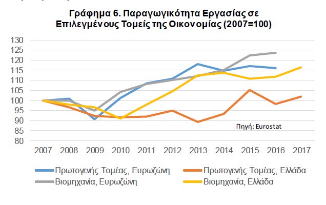 Ο τελευταίος παράγοντας έχει ως συνέπεια τη μικρή βελτίωση της παραγωγικότητας (ΑΕΠ ανά απασχολούμενο) του πρωτογενούς τομέα στα χρόνια της κρίσεως σε σύγκριση με εκείνη της ελληνικής βιομηχανίας και την παραγωγικότητα του τομέα στην Ευρωζώνη.