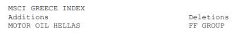 Εν τω μεταξύ, αλλαγές υπήρξαν στον δείκτη «MSCI Global Small Cap» (χαμηλής κεφαλαιοποίησης), όπου προστέθηκε η Folli Follie και αφαιρέθηκε η Motor Oil.