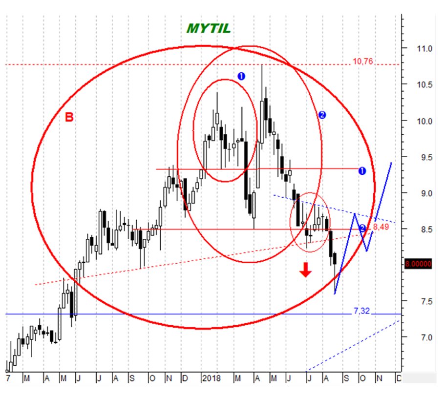 Η τελευταία επιβεβαιωμένη διπλή κορυφή που έχει στόχο στα 6,22€ ακυρώνεται με υπέρβαση και παραμονή της τιμής της μετοχής πάνω από τα 8,49€ ή καλύτερα πάνω από τα 8,83€ που βρίσκεται το ψηλό του Ιουλίου.