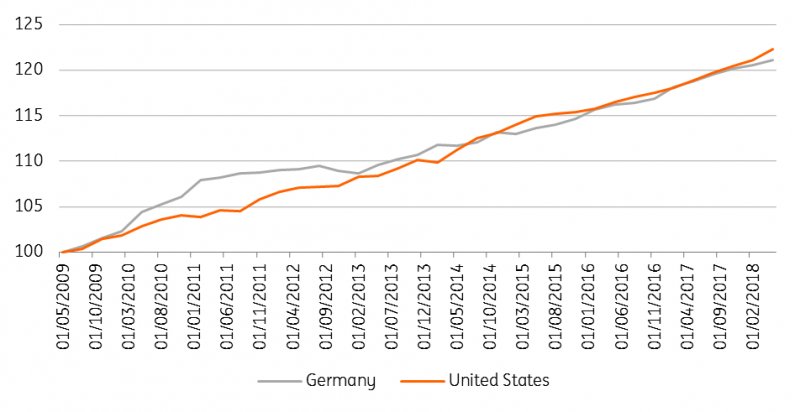 Η γερμανική οικονομία δεν κλείνει προς το παρόν τον «χρυσό» δεκαετή κύκλο ισχυρής ανάκαμψης (σε αντίθεση με ορισμένες χώρες της ΕΕ) που ακολούθησε την κρίση, παρά την κάμψη που παρατηρείται σε βασικά μεγέθη, εκτιμούν οι αναλυτές της ING.