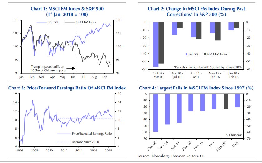 Εν κατακλείδι, η Capital Economics εκτιμά ότι ο δείκτης MSCI των αναδυόμενων αγορών θα σημειώσει πτώση της τάξης του 10% με 15% έως τα τέλη του 2019, ελαφρώς χαμηλότερηη από την προβλεπόμενη πτώση του S&P 500.