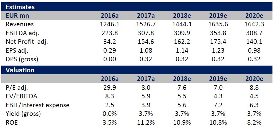 Η αποτίμηση της μετοχής είναι στο 5,5x σε όρους EC/EBITDA με βάση τις εκτιμήσεις του 2018, ενώ προσφέρει σημαντικές αποδόσεις με μερισματική απόδοση 3,7% στην περίοδο 2018-2019.