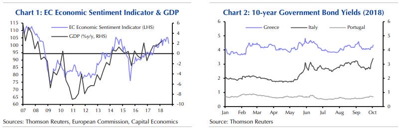 H Ελλάδα κινδυνεύει με δημοσιονομικό εκτροχιασμό το 2019, εξέλιξη η οποία θα οδηγήσει σε εκτόξευση τις αποδόσεις των ομολόγων και θα απειλήσει την έξοδο της χώρας στις αγορές, προειδοποιεί η Capital Economics.