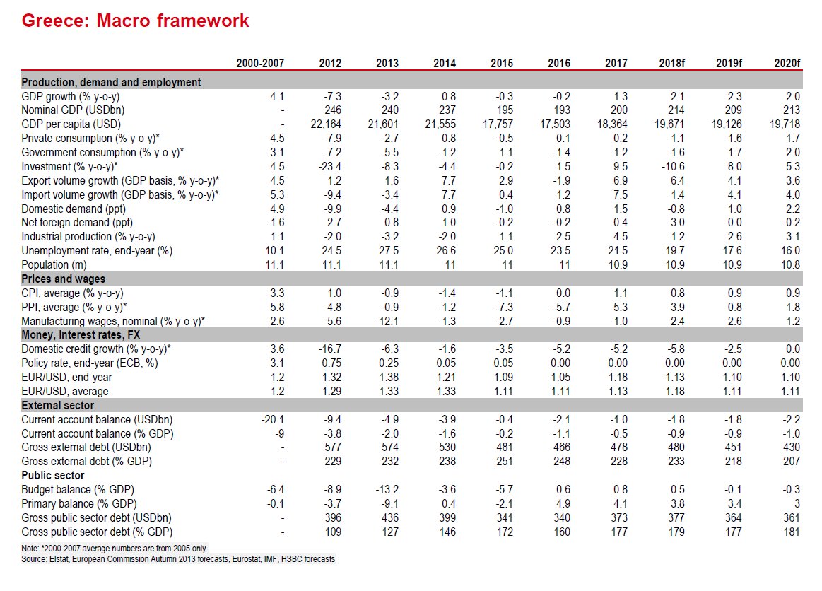 Μάλιστα, η HSBC αναθεώρησε τις προσδοκίες για την ανάπτυξη της ελληνικής οικονομίας στο 2,3%, ενώ για το 2020 αναμένει ανάπτυξη 2%.