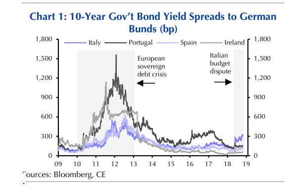 Οι αγορές ομολόγων της Ευρωζώνης είναι λιγότερο ευάλωτα στην ιταλική κρίση σε σχέση με την κρίση που ξέσπασε στην Ελλάδα το 2015, σύμφωνα με τις εκτιμήσεις των αναλυτών της Capital Economics.