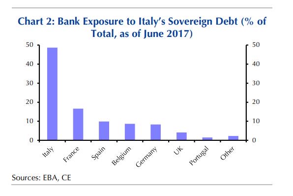 Όσον αφορά τις τράπεζες, το συστημικό ρίσκο είναι χαμηλό, καθώς η έκθεση των ευρωπαϊκών τραπεζών στο ιταλικό χρέος είναι μικρή.