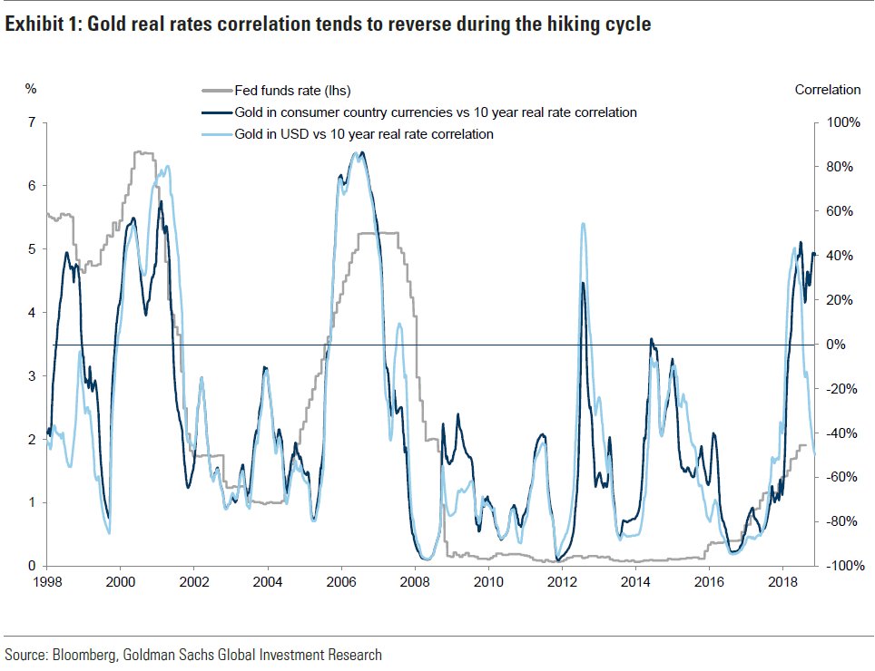 Αυτό ήταν μια έκπληξη για την αγορά, σύμφωνα με την Goldman Sachs, η οποία από το 2008 έχει δει ισχυρή αρνητική συσχέτιση μεταξύ του χρυσού και των μακροπρόθεσμων επιτοκίων των ΗΠΑ.