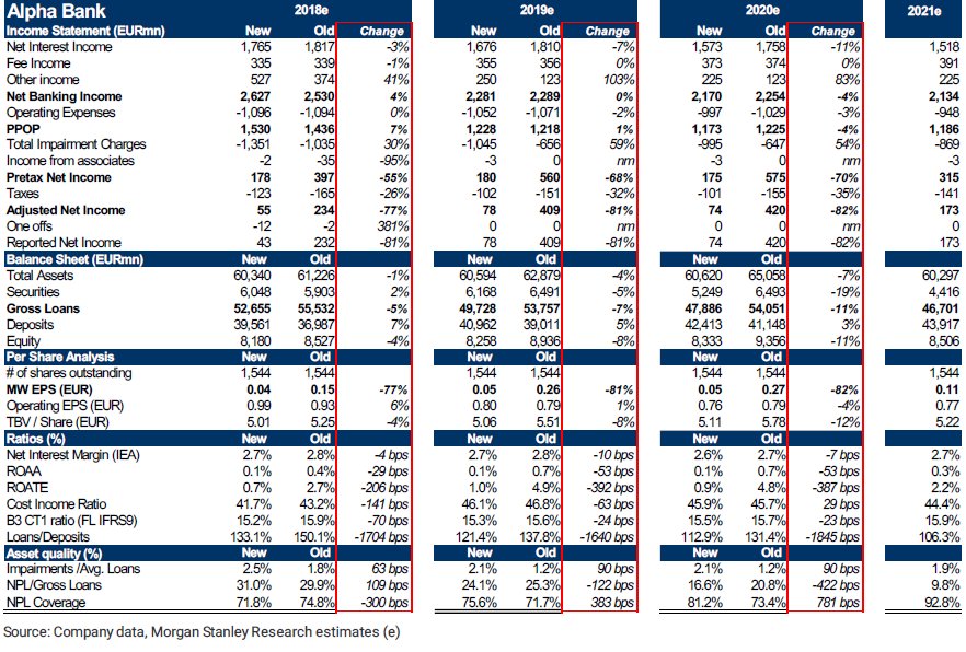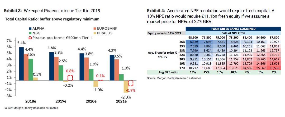 Ειδικότερα, στη σημερινή, 19 Δεκεμβρίου 2018, 51σέλιδη ανάλυσή της υπό τον τίτλο "Greek Banks - Exploring the 'bad bank' bull case" (ελληνικές τράπεζες - διερευνόντας το θετικό σενάριο της bad bank), η Morgan Stanley επισημαίνει ότι οι στόχοι για τη μείωση των NPEs θα επιφέρουν ένα κόστος για τους επενδυτές της τάξεως των 11,1 δισ. ευρώ.