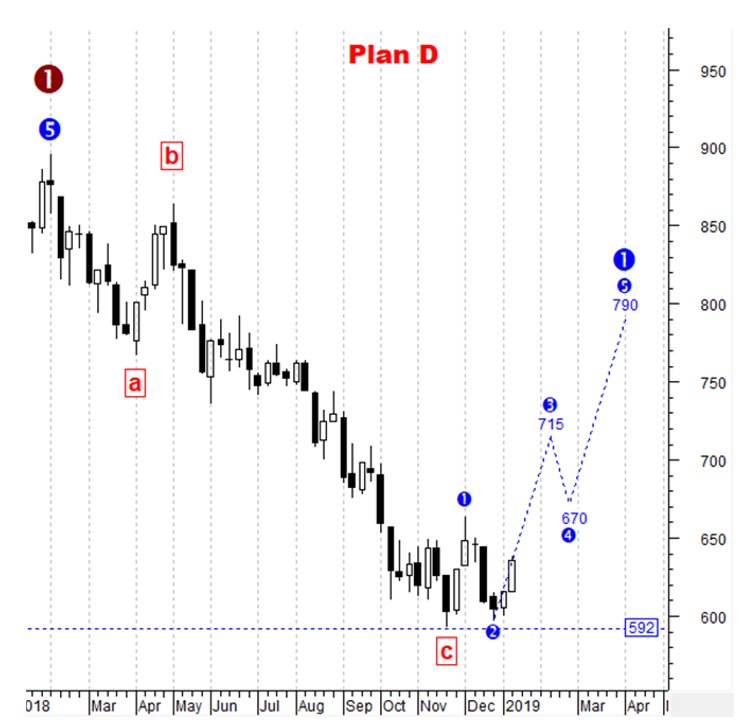 Η μακροπρόθεσμη καθοδική κίνηση δεν έχει τελειώσει και στη συνέχεια θα ακολουθήσει καθοδικό C που θα πετύχει νέο χαμηλό (περίπου 520-540 μονάδες).