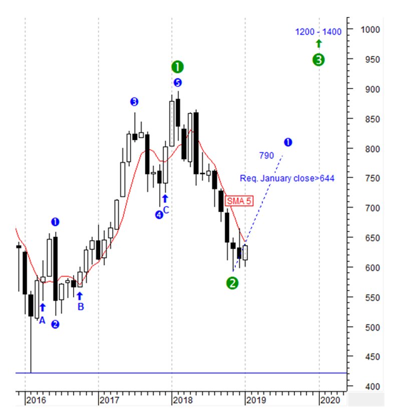 Από το χαμηλό του Νοεμβρίου των 592 μονάδων έχει αρχίσει η νέα ανοδική κίνηση που βρίσκεται στα πρώτα της στάδια.