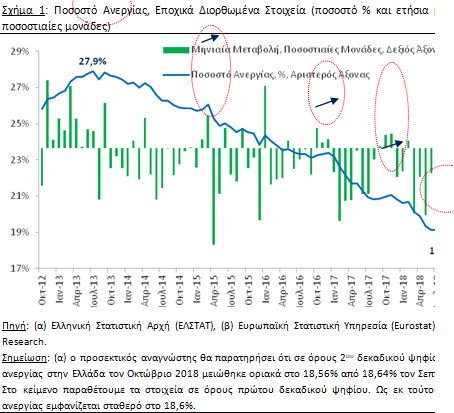 Επιπροσθέτως, δεν αποκλείουμε στην παρατήρηση του Νοεμβρίου 2018 (δημοσίευση 7/2/2018) να εμφανιστεί περαιτέρω στασιμότητα ή και οριακή αύξηση του ποσοστού ανεργίας στην Ελλάδα.